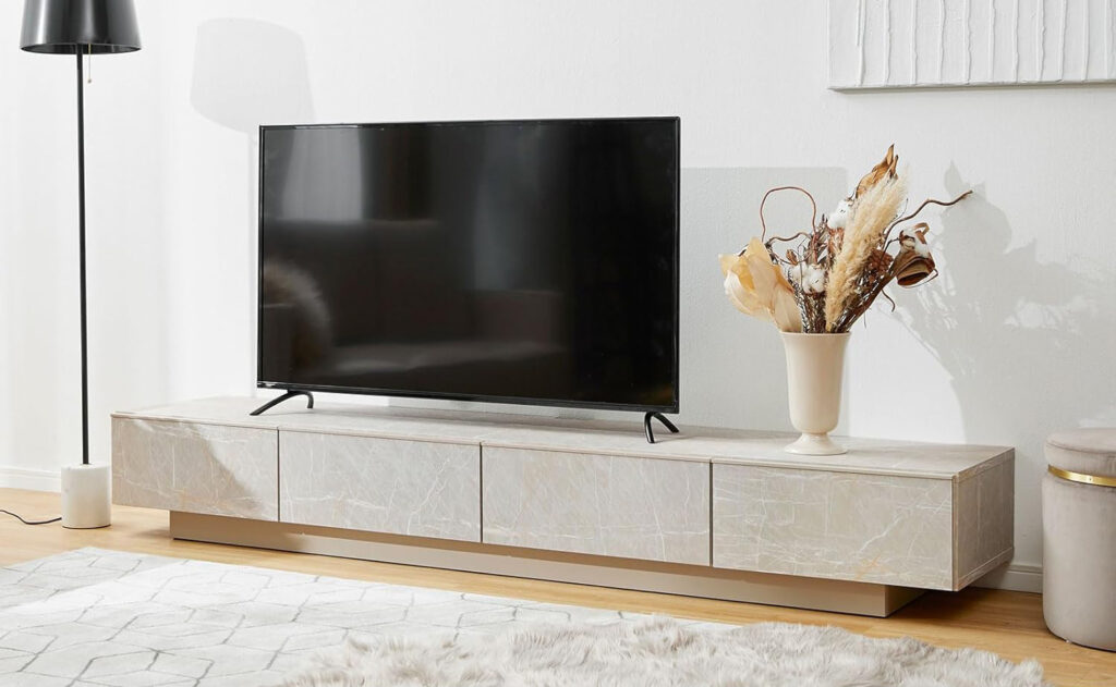 テレビボード選びで最も重要なのは「サイズ」です。テレビボードのサイズが適切でないと、テレビが大きく見えすぎたり、圧迫感が出たりして、モダンな印象が損なわれてしまいます。特に、「幅」「高さ」「奥行き」の3つの要素をバランスよく考えることが大切です。